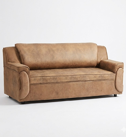 PU Foam Comfort 3-Seater Sofa – Classic Brown Edition
